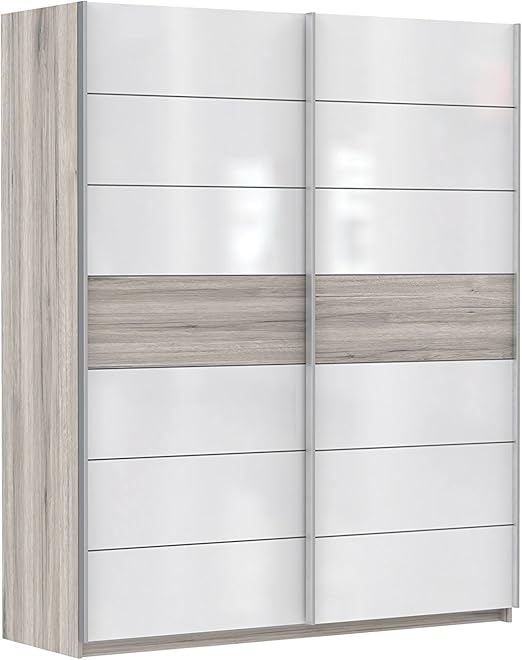 Besonders die absetzungen in hochglanz verleihen dem schrank elegante akzente. Gestalten sie ihr schlaf oder jugendzimmer in einem hellen und freundlichen holzdekor in sandeiche optik in kombination mit weiß hochglanz mit diesem schönen schwebetürenschrank.